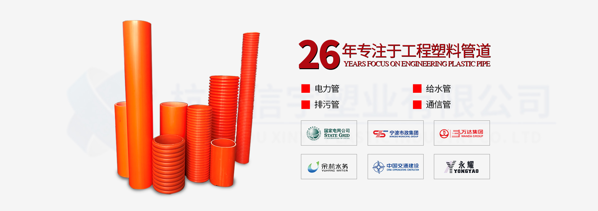 杭州信宇塑業(yè)有限公司創(chuàng)立于1993年,注冊資金10080萬元,是一家集塑料管道研發(fā)、制造、銷售為一體的國家高新技術(shù)企業(yè)。公司總部坐落于美麗的杭州西子湖畔,目前在杭州市黃湖工業(yè)園、安徽郎溪新發(fā)工業(yè)園建有兩大管道生產(chǎn)基地,總占地面積11萬平方米。此外,公司還擁有一家獨資子公司—安徽信宇管業(yè)科技有限公司。公司現(xiàn)有全自動塑料擠出機生產(chǎn)線52條,高精度模具500余套,年生產(chǎn)能力達10萬噸。公司專業(yè)生產(chǎn)“信宇中塑”牌HDPE給排水管、HDPE中空壁纏繞管、…